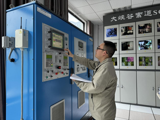索道技术岗青年认真检查设施设备确保游客安全有保障