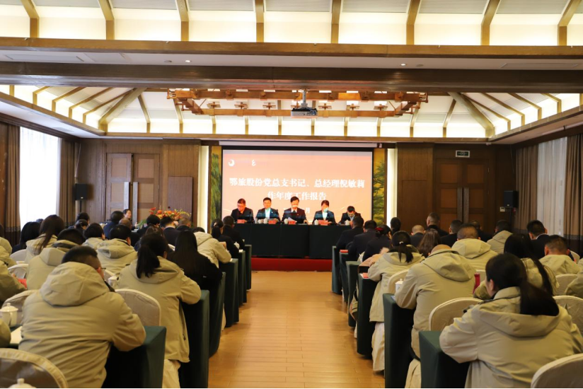 1月25日,鄂旅股份在恩施大峡谷景区女儿寨酒店召开2023年度总结表彰与2024年度工作暨安全生产工作会。鄂旅股份董事长顾浩及在家经营班子成员出席会议,党总支书记、总经理倪敏莉在会上作年度工作报告。