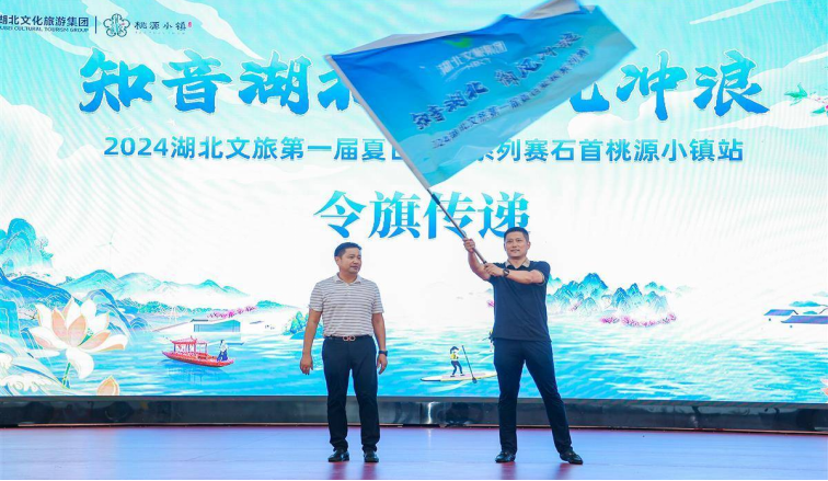 8月17日,鄂旅股份参加石首桃源小镇站桨板比赛,深入现场学习赛事筹备、组织执行等活动经验,并接收恩施大清江红花峰林站夏日浆板赛令旗传递。