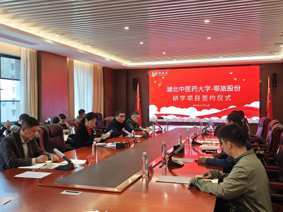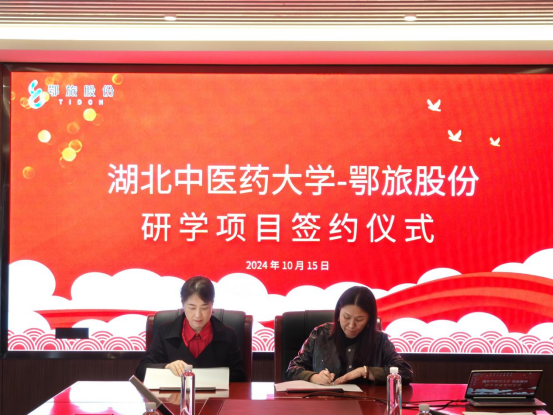 2024年10月15日,湖北中医药大学与鄂旅股份在恩施怡游酒店举行了中医药研学项目签约仪式。此次签约标志着双方在中医药文化传承与文旅创新融合方面的深度合作正式拉开序幕,共同探索中医药研学助推旅游发展的新模式、新路径。