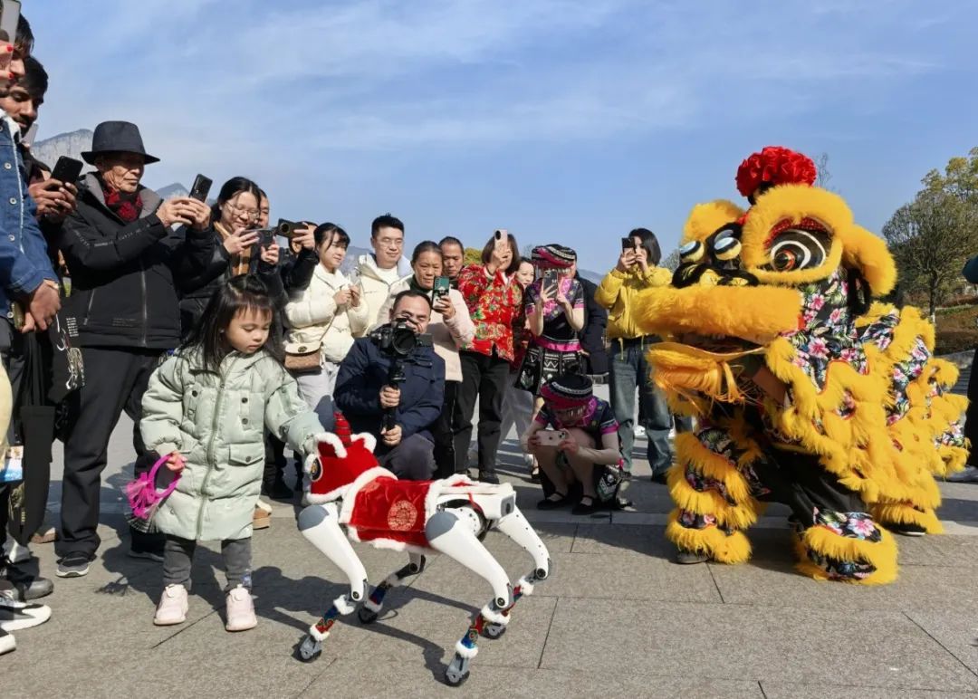 “快来、快来,这里有机器狗啊,太好玩了,太可爱了……”游客惊叹道。今年春节的恩施大峡谷不止有机器狗跳舞、服务游客,更有机器人COS土家幺妹与游客进行深度互动,让高科技搭子陪你过新年。