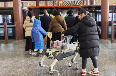 机器狗向游客赠送冬日暖心茶饮