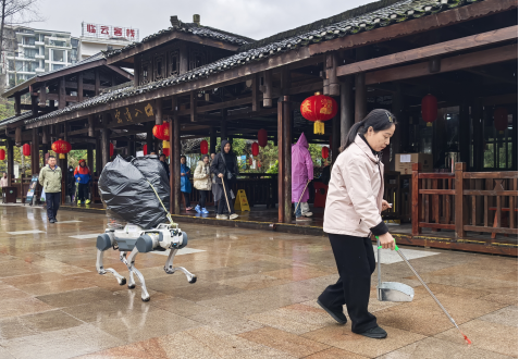 机器狗正在协助进行景区清洁工作