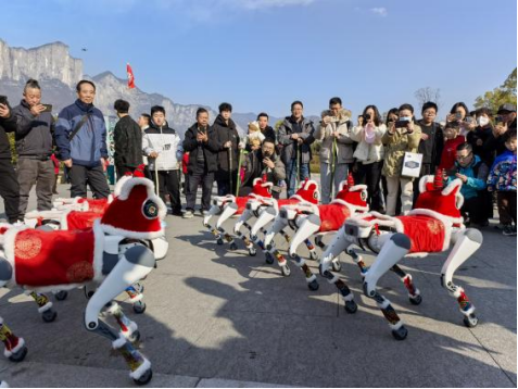 正是这一系列的努力和坚持,换来了游客们的称赞和喜爱。游客纷纷表示,机器狗的出现让他们的旅行变得更加有趣和难忘。一位来自湖南的游客兴奋地说:“以前都是在网络上看到,这次看到了真的机器狗,感受到了祖国的强大和景区的用心,恩施大峡谷这次真的给了我一个大大的惊喜!” 还有游客在社交媒体上写道:“恩施大峡谷的机器狗简直是春节最可爱的存在!它还可以驮运行李,真的推荐大家来恩施大峡谷,感受一下科技文旅的魅力!”