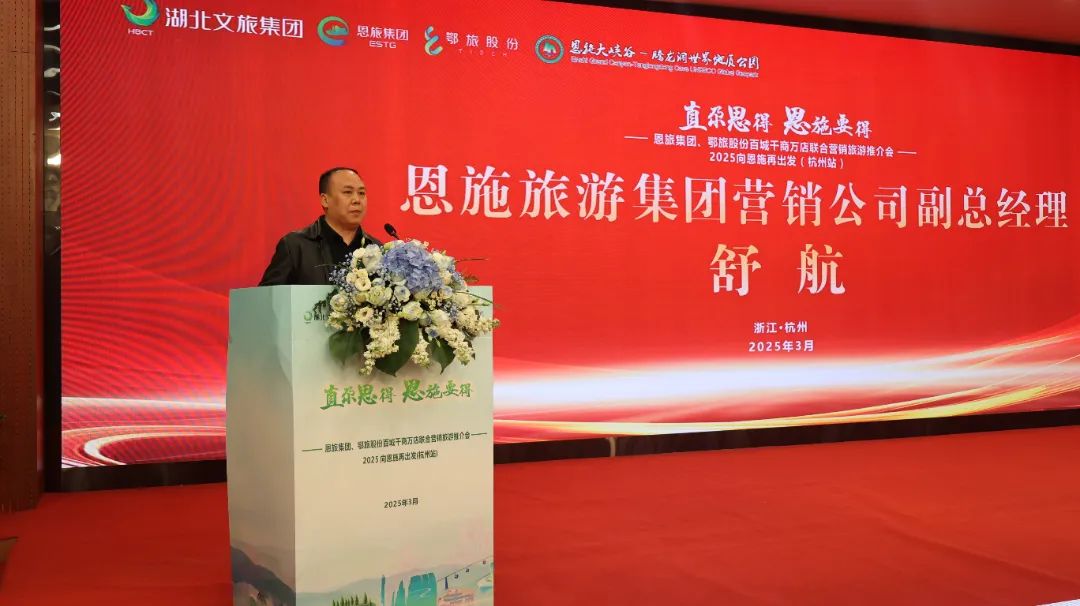 恩旅集团营销公司副总经理舒航在推介会上表示,在杭州举办此次推介会,旨在借助杭州这一平台,向广大的杭州市民及旅游界同仁展示恩施丰富多彩的旅游资源和优质的旅游产品,深化与杭州旅游界的交流与合作,促进资源共享、客源互送,共同开创旅游市场的新篇章。