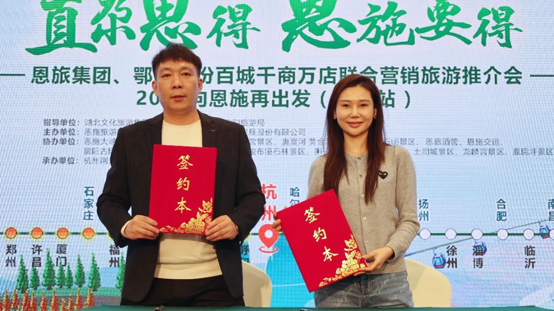 3月19日,由恩旅集团、鄂旅股份主办的2025年“百城千商万店”联合营销旅游推介会在哈尔滨、杭州两城举办,盛情邀请两地游客共享恩施山水之美。