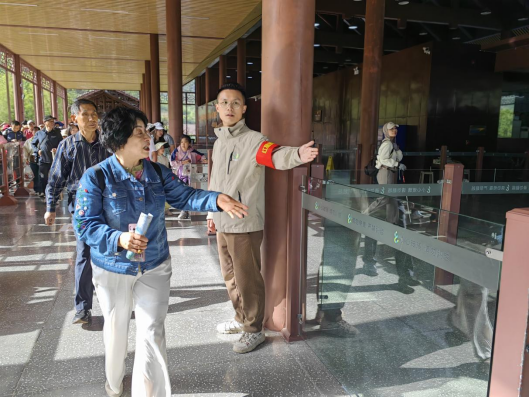 为确保增援工作高效有序,服务队实行七组联动、灵活协同服务机制。根据景区实际需求,分为安全保障、景区咨询、综合服务、财务票务等7个小组,为游客提供贴心、暖心服务。