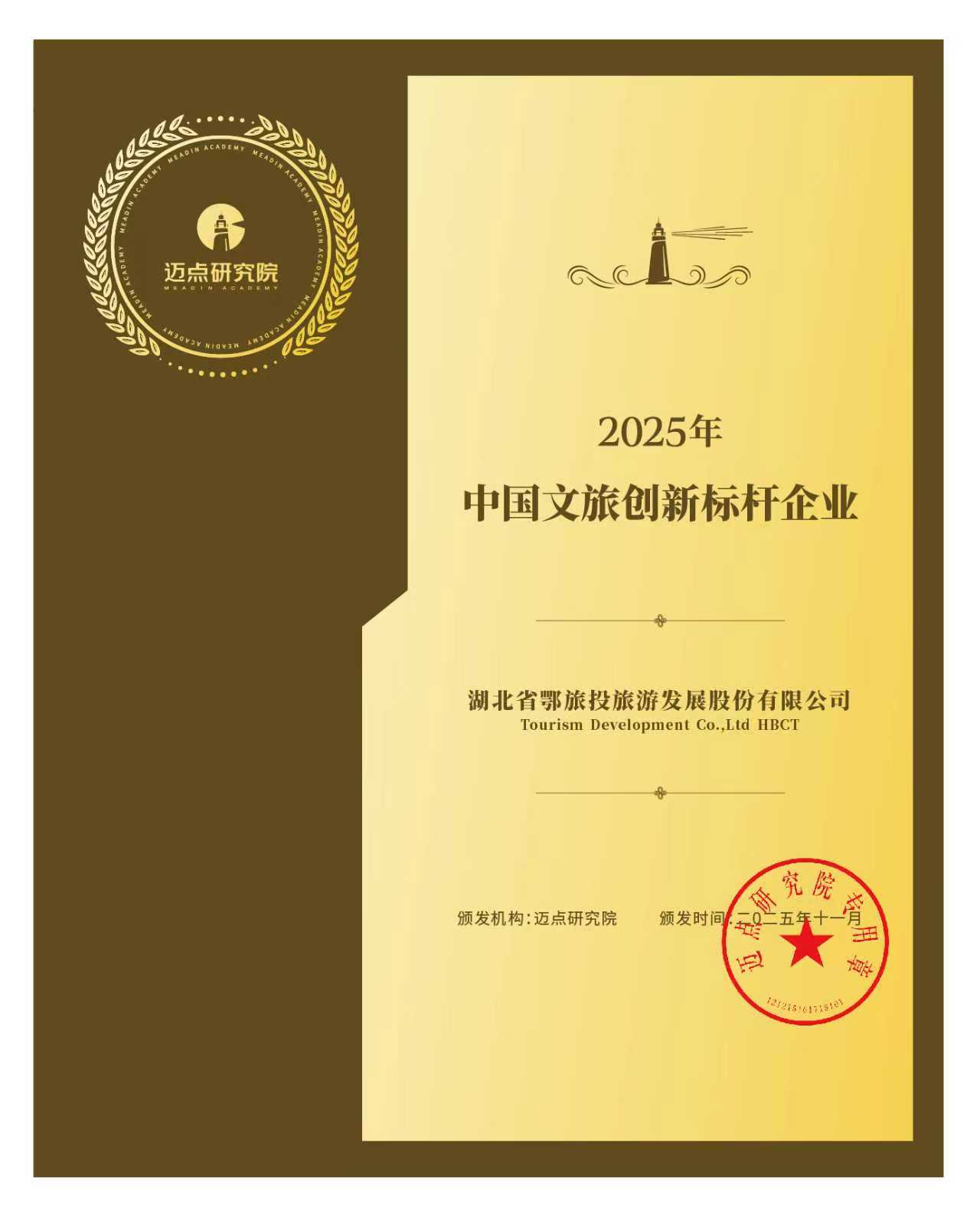 11月20日,在杭州举办的2025第五届迈点文旅景区运营盛典上,鄂旅股份凭借其在科技产品应用、服务标准化建设与智慧景交系统等方面的创新成果,斩获“中国文旅创新标杆企业”奖项。