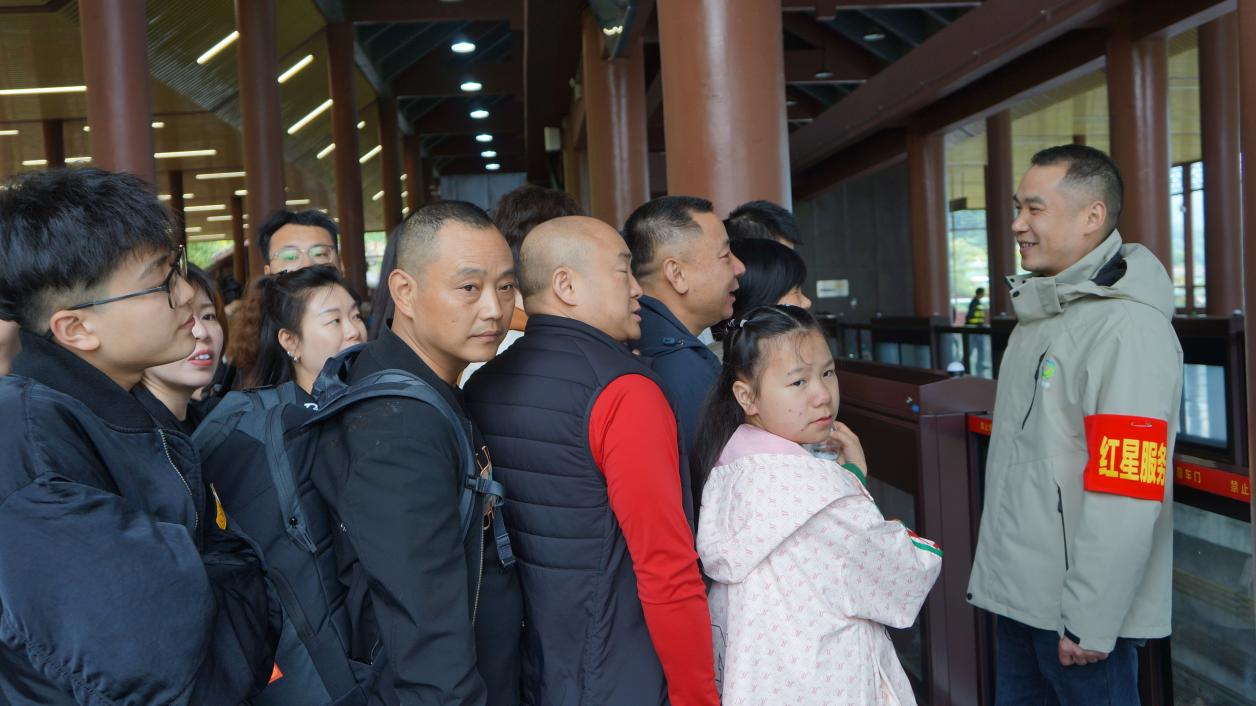 从早晨7点景区开园到夜晚9点游客返程,队员们以饱满的精神状态,在景区亮身份,在秩序维护、站务票务、后勤服务等岗位,用一抹抹“红”为游客答疑解惑,提供热情服务,引导游客文明观光,保障游客安全出行,始终保持敬业之心、服务之心、责任之心,力争为游客带来更美好的旅游体验。队员王炜说:“我们要用最好的服务,以一颗颗初心、诚心、热心,赢得游客的安心、放心、舒心......”