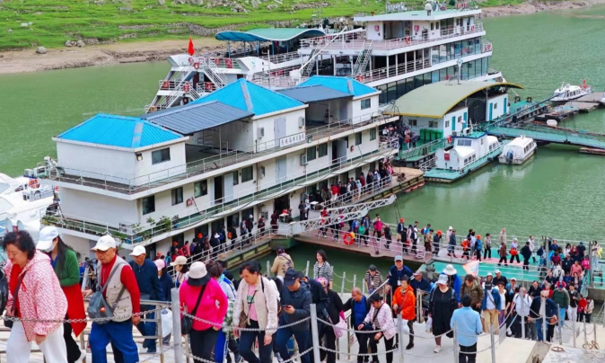 5月30日,伴随着迎宾鼓的响起,万人省外专列首发团近600人抵达恩施大清江云坛口旅游码头。景区和清江索道公司精心准备了土家族特有的迎客仪式,土家幺哥幺妹唱起迎客歌,端上拦门酒,欢迎远道而来的专列团嘉宾。