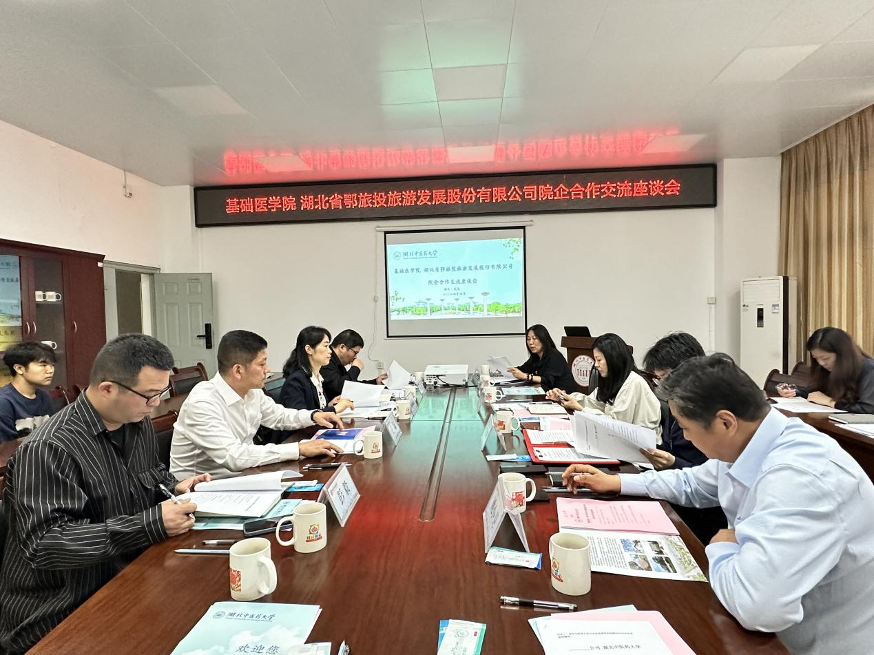 4月23日上午,鄂旅股份总经理倪敏莉带队前往湖北中医药大学基础医学院洽谈合作,与湖北中医药大学党委常委曹继刚座谈,就校企合作进行交流。