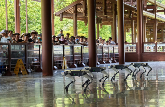 9月12日-14日,2025中国文化旅游产业博览会在湖北武汉盛大启幕,鄂旅股份携智能机器狗天团和外骨骼机器人成为全场焦点。这些灵活的机器狗不仅随着音乐节奏跳动舞蹈,还能为与会嘉宾递送饮用水和伴手礼,派发宣传手册,实现科技与服务的完美融合。