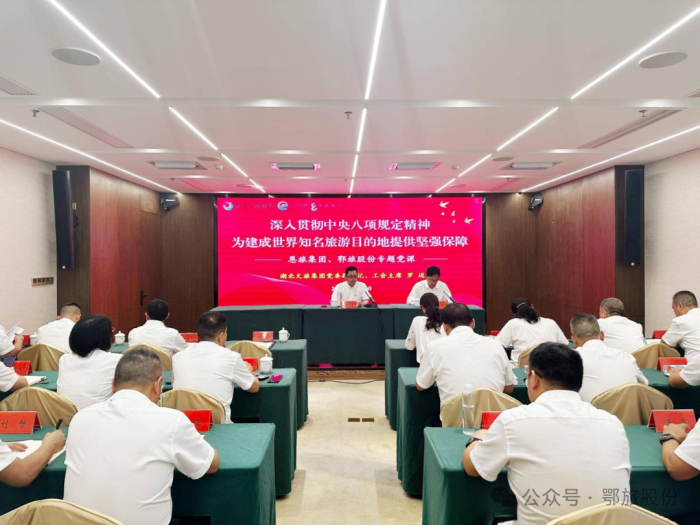 为深入贯彻中央八项规定精神学习教育,7月4日,集团党委副书记罗迈到恩旅集团、鄂旅股份讲授专题党课。恩旅集团党委书记、董事长,鄂旅股份董事长顾浩主持会议。