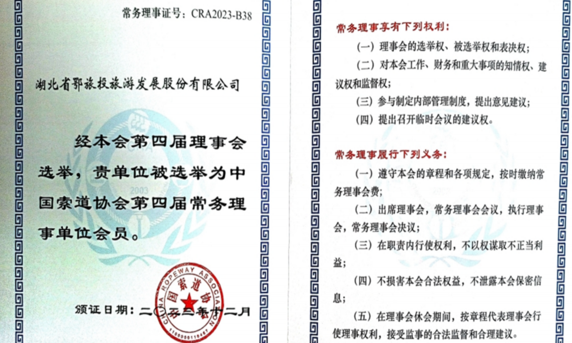 喜报 | 鄂旅股份晋升为中国索道协会常务理事单位