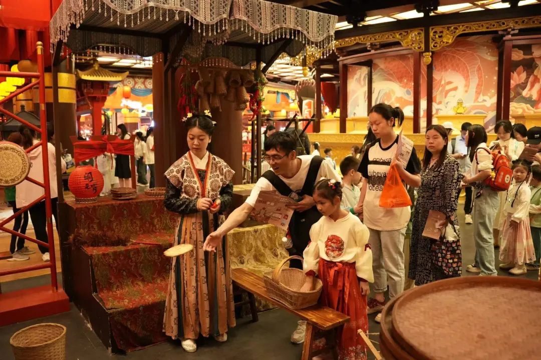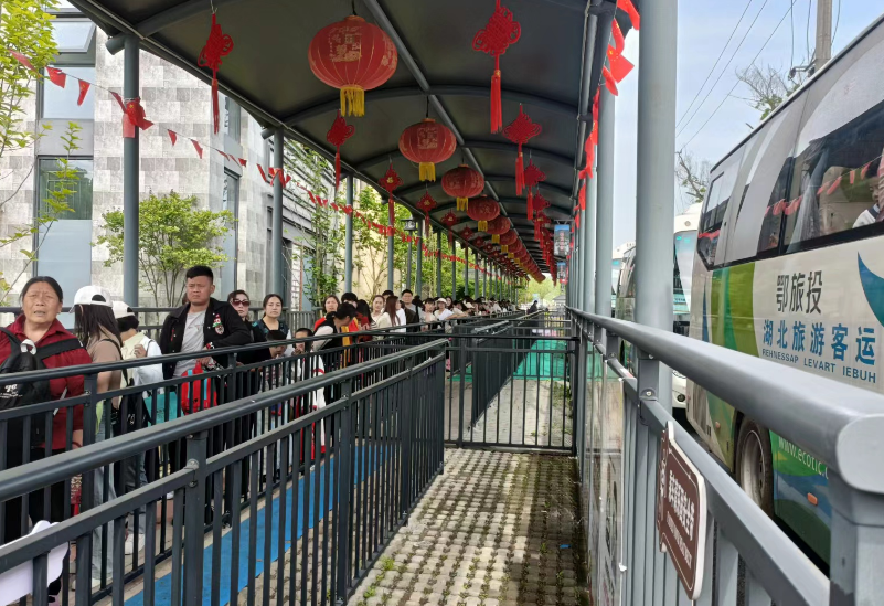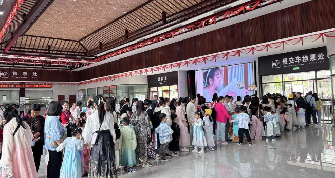 在老师们的带领下,大小朋友们身着汉服、队列整齐,在景交车检票口排队检票乘车。为了让大小朋友们拥有舒适安心的研学体验,以保证本次团队游客服务质量,在黄石客运公司的精心组织下,公司全员上岗,分别在中心闸机检票口、中心候车区、南门换乘区等重要位置进行现场秩序维护,协助大小朋友们安全上车,在所有工作人员的耐心引导下,大小朋友们排队检票有序上车。为了让大家都能赶上东昌阁演出时间,所有景交车和观光车驾驶员们马不停蹄地一趟一趟有序输送,贴心的服务流程获得了家长们及老师们的一致好评。